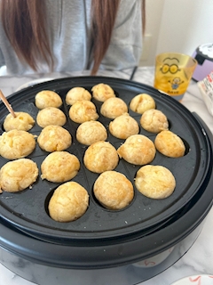 おはよ〜☀️ まりんです☺️ 大好きなお姉さんとタコパ🐙 タコ食べれないから コーンとウインナーとチーズ入れて食べた🧀 ウインナー初めて入れてみたんだけど めちゃ美味しいから試して欲しいに^_^ 今日ものめます!