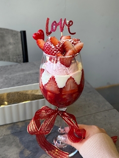 こんばんわ~🌙 はるかです🎀🎀 きのうもたくさん ありがとうございました⋆౨ৎ˚⏦゚♡︎ きのうはかわいいかわいい パフェたべたよ🎀🍓 大好物のいちごがハートになってて かわちこ〰️😿🩷 きょうは巫女コス最終日です🎍 あけおめしよう~~ 20時~います